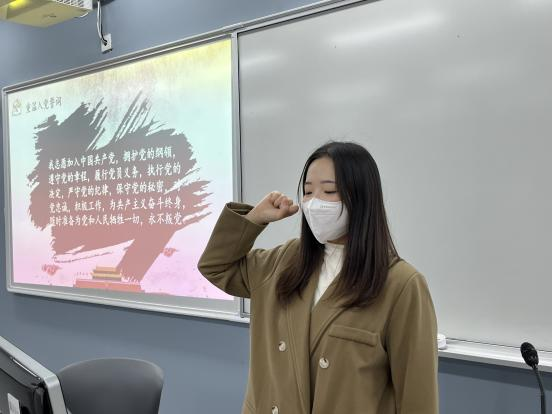 在交流会结束后,支部组织党员开展了“过政治生日,忆入党初心”主题党日活动,为在第四季度加入中国共产党的党员们庆祝政治生日。活动中,杜星瑞带领与会党员重温了入党誓词,向在场的党员送上“政治生日”贺卡,党员代表王妍分享了个人入党故事并表达了作为党员应当肩负起时代使命,勇于担当、甘于奉献的决心。