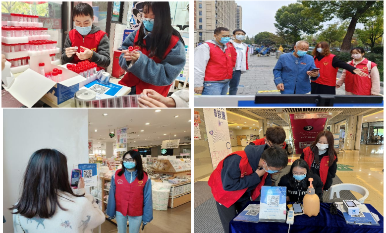 微光如炬,齐心协力,众志成城,研究生第一党支部的党员们化身“红衣战士”,成为街头一道道耀眼的风景线。有的志愿者承担起给核酸检测试剂盒贴标签的任务,为全区核酸检测提供了强力支援;有的志愿者在核酸检测现场维持秩序,检查健康码,督促群众注意保持一米安全距离;还有的志愿者下沉到商场,监督顾客扫码登记,有序有力参与疫情防控工作,用文明实践行动和力量筑牢疫情防控屏障。同时,为促进城市文明建设,以数字赋能化提升城市新时代文明实践志愿服务领域整体水平,党员志愿者们还帮助云滨社区完成“文明帮帮码“扫码志愿活动,实现新时代文明实践志愿服务精准触达。