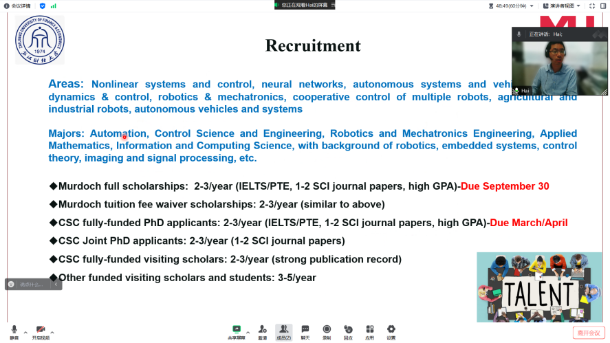 师生作了一场题为“Adaptive path tracking control of maize plant protection robot via extreme learning machine”的线上学术讲座。讲座由盘口分析