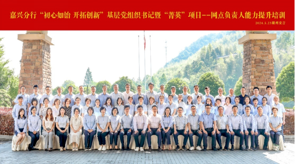 承办的“初心如饴 开拓创新”基层党组织书记培训暨“菁英”项目-网点负责人能力提升培训在安吉成功举办。建行嘉兴分行部分基层党组织书记和各支行网点负责人共计70人参加培训。