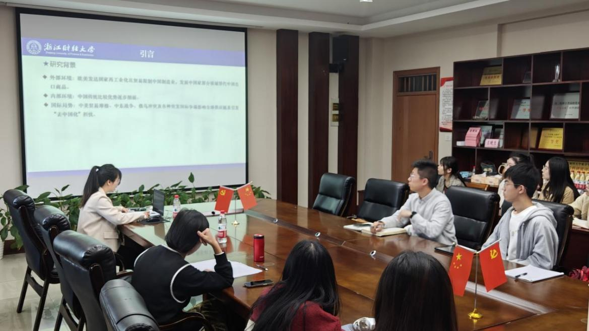 潘美莹作题为《我国出口贸易国际竞争力分析——基于贸易增加值的比较优势测度》的学术报告。她基于2007—2022年ADB-MRIO数据库,从市场比较与价值分工比较双重视角,对中国出口贸易的国际竞争力发展现状及结构性问题展开综合分析。